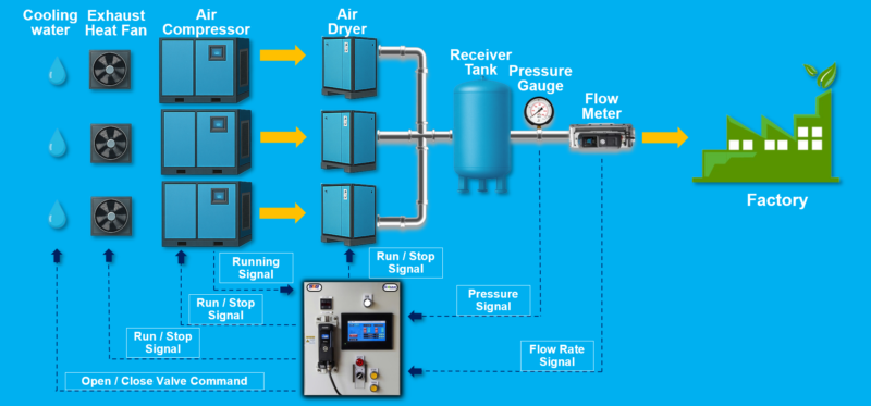 Trong nhiều nhà máy hiện nay, máy nén khí tiêu thụ tới 20–40% tổng điện năng, nhưng lại thường được vận hành theo phương pháp truyền thống: bật/tắt theo áp suất, chạy dư tải và lãng phí điện năng mà không được kiểm soát chính xác.